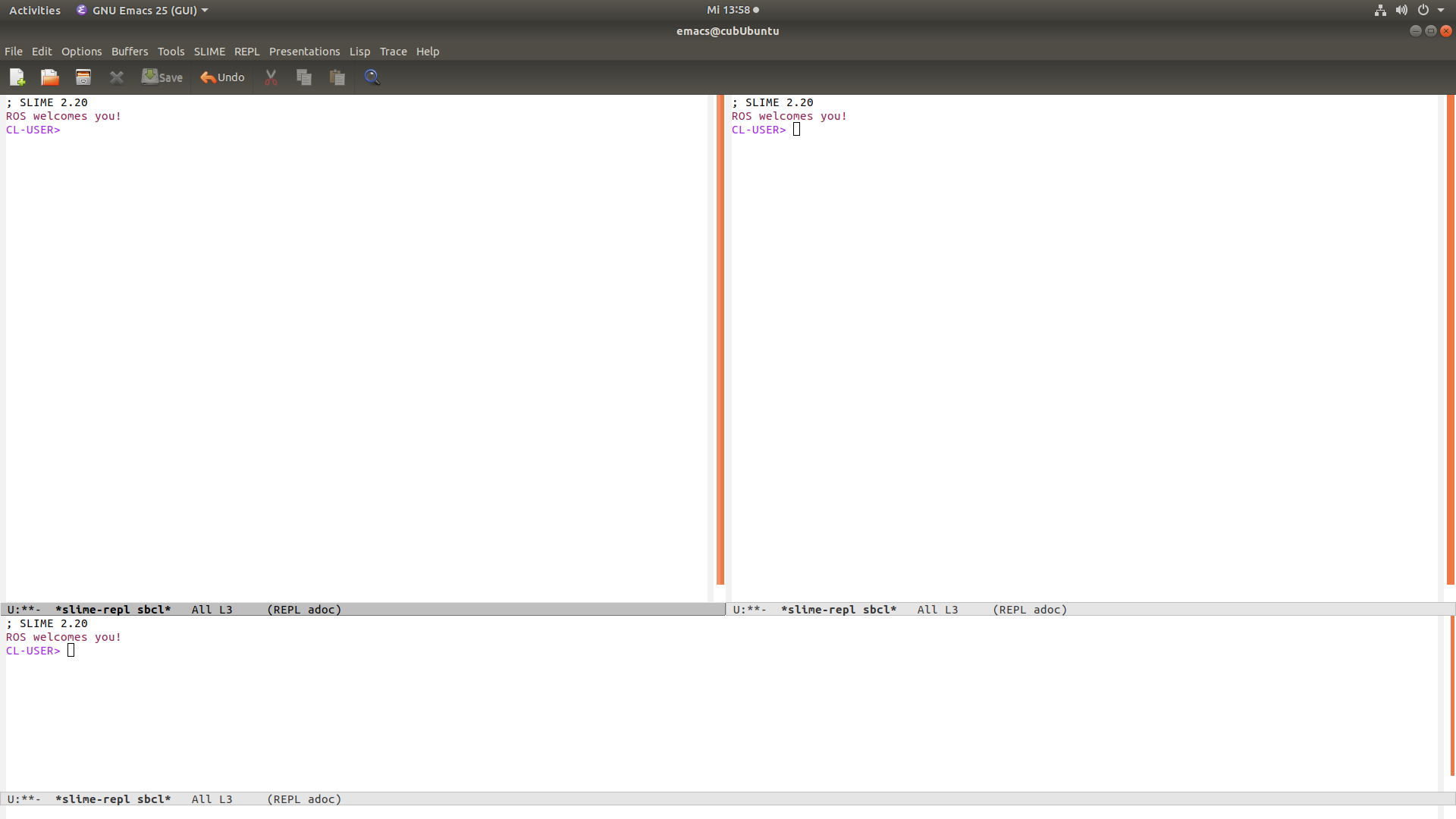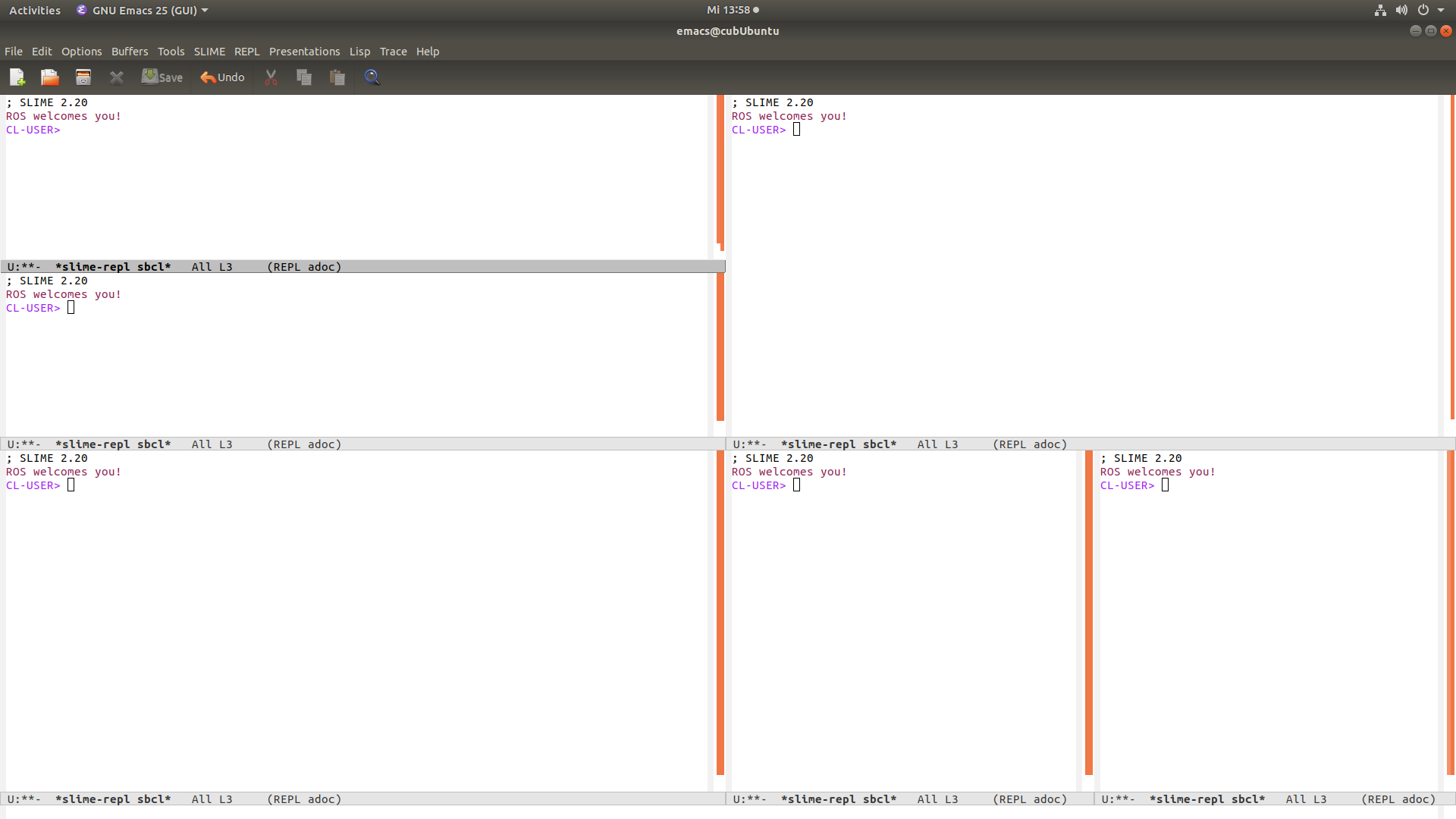 - , : Opens mini-buffer to use shortcuts (see ,help), one important example is ,ros-load-system to load ROS package LISP systems.